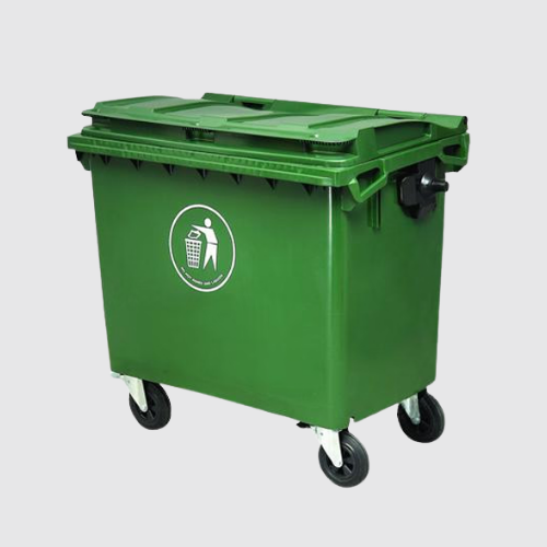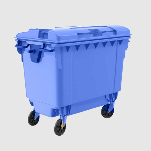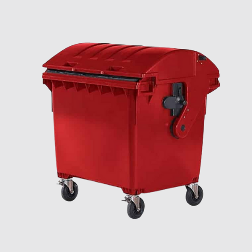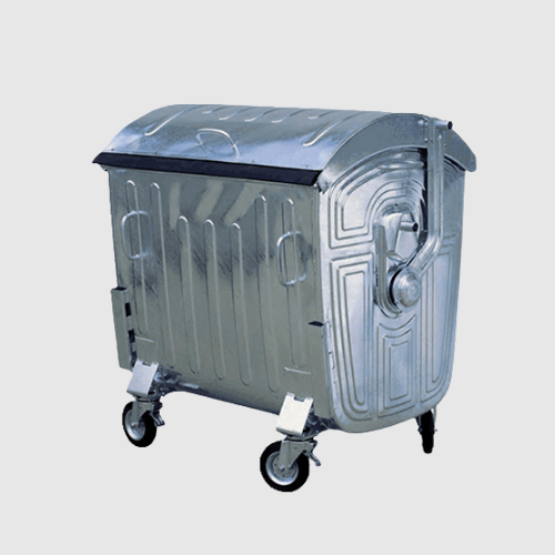 Metal wheeled waste bin with a capacity of 1100 liters, according to EN 840-3/5/6 European standard.